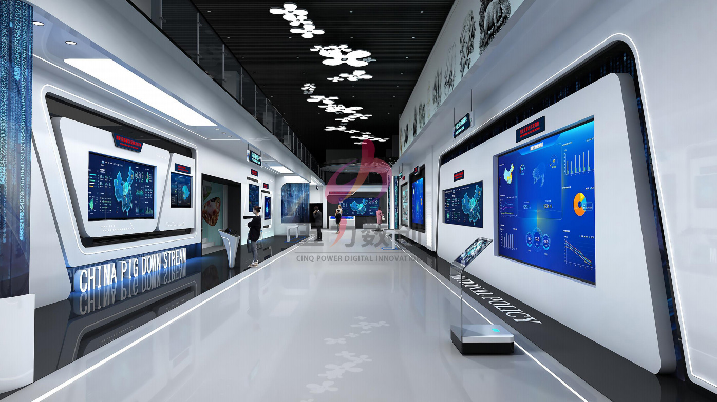 項目介紹:生豬大數據中心聚焦中國生豬完整的產業鏈,以大數據的方式來為榮昌打造獨一無二的生豬大數據中心,致力于生豬產業數字化、數字產業化。整個大數據中心從豬的生產、養殖、交易幾大板塊,通過數字沙盤、互動場景體驗、互動滑軌屏等多種數字多媒體技術來全方位多角度展示生豬全產業鏈的各個環節,助力產業數字化升級,為生豬行業提供準確可靠的決策依據。專精尖技術與產學研層面縱橫結合,全角度、多方位立體聚焦生豬全產業鏈,以明確的觀感呈現信息技術與生豬生產相結合的先進科技,助力生豬產業智能升級,推動數字養豬新基建的發展。